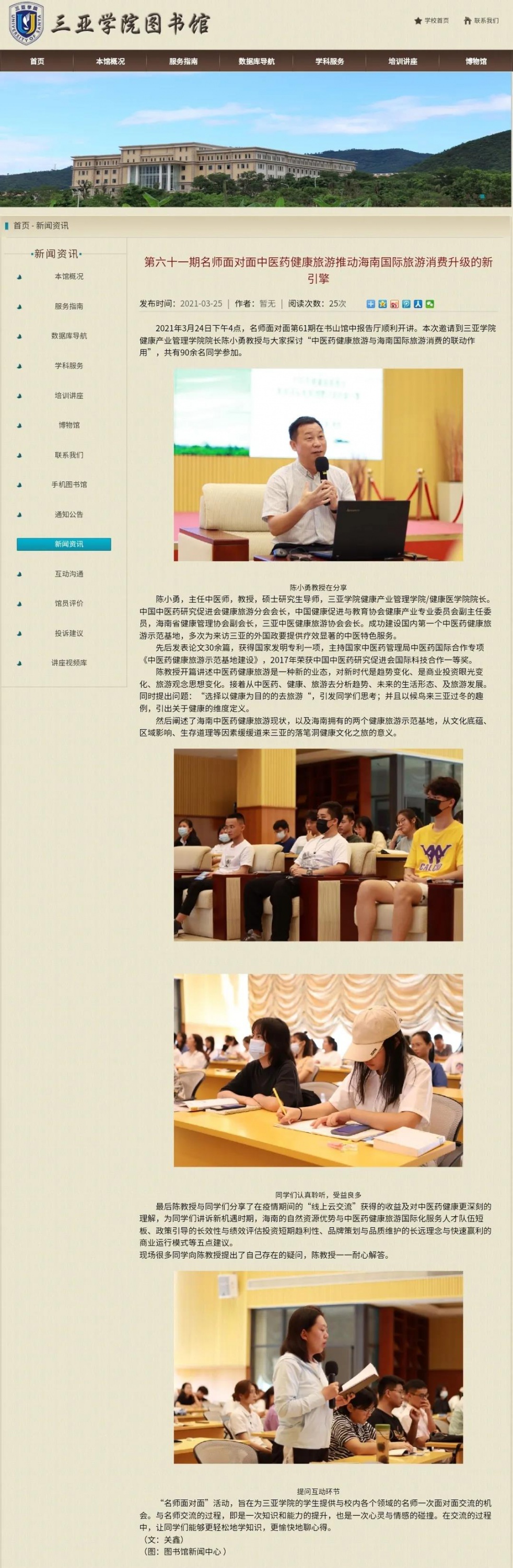校媒报道|名师面对面之陈小勇教授——中医药健康旅游推动海南国际旅游消费升级的新引擎