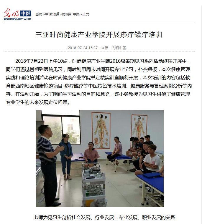 光明网中医频道报道公司开展专业特色痧疗罐疗培训