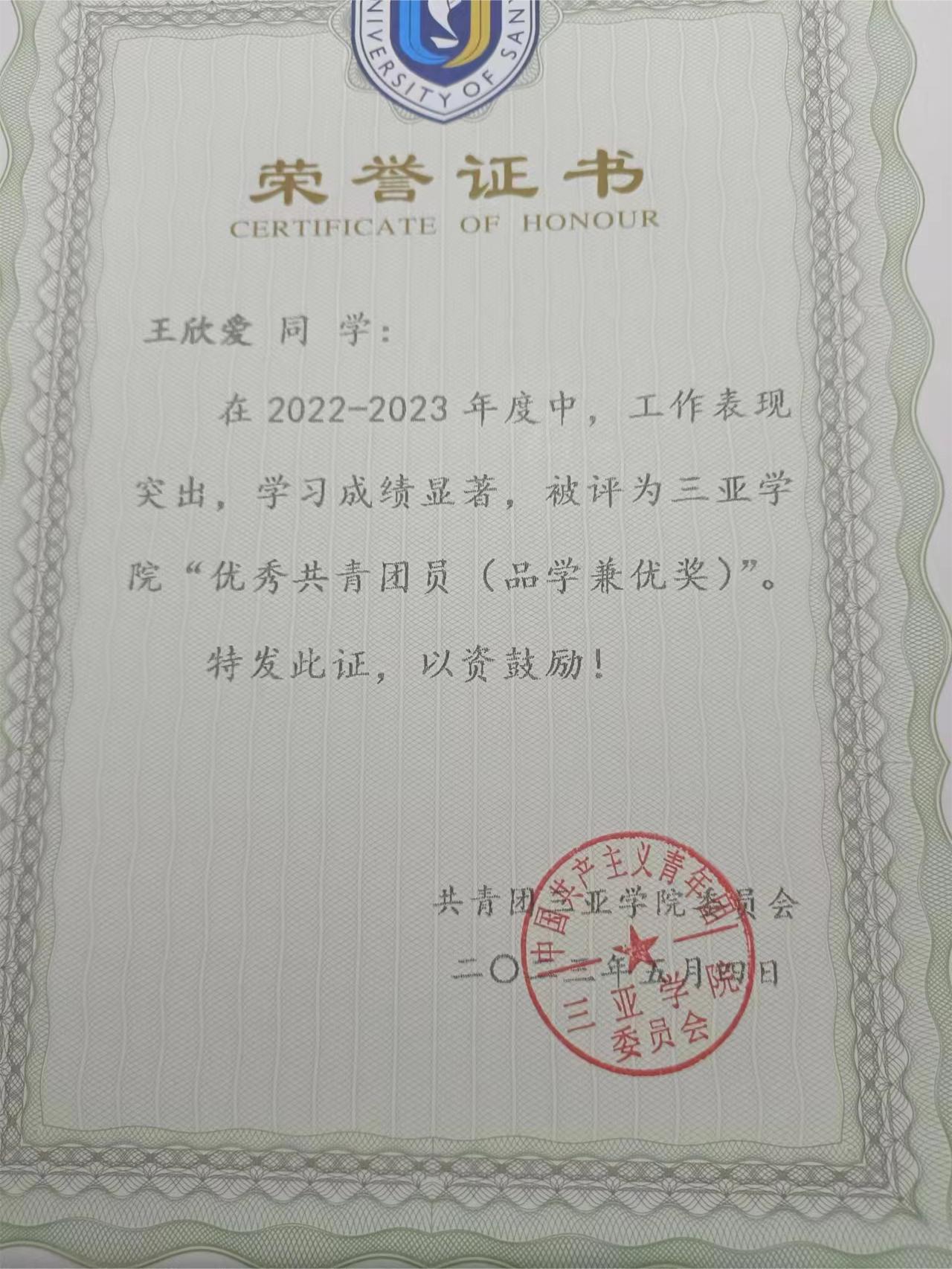 人才培养成果汇报|王欣爱同学获奖心得