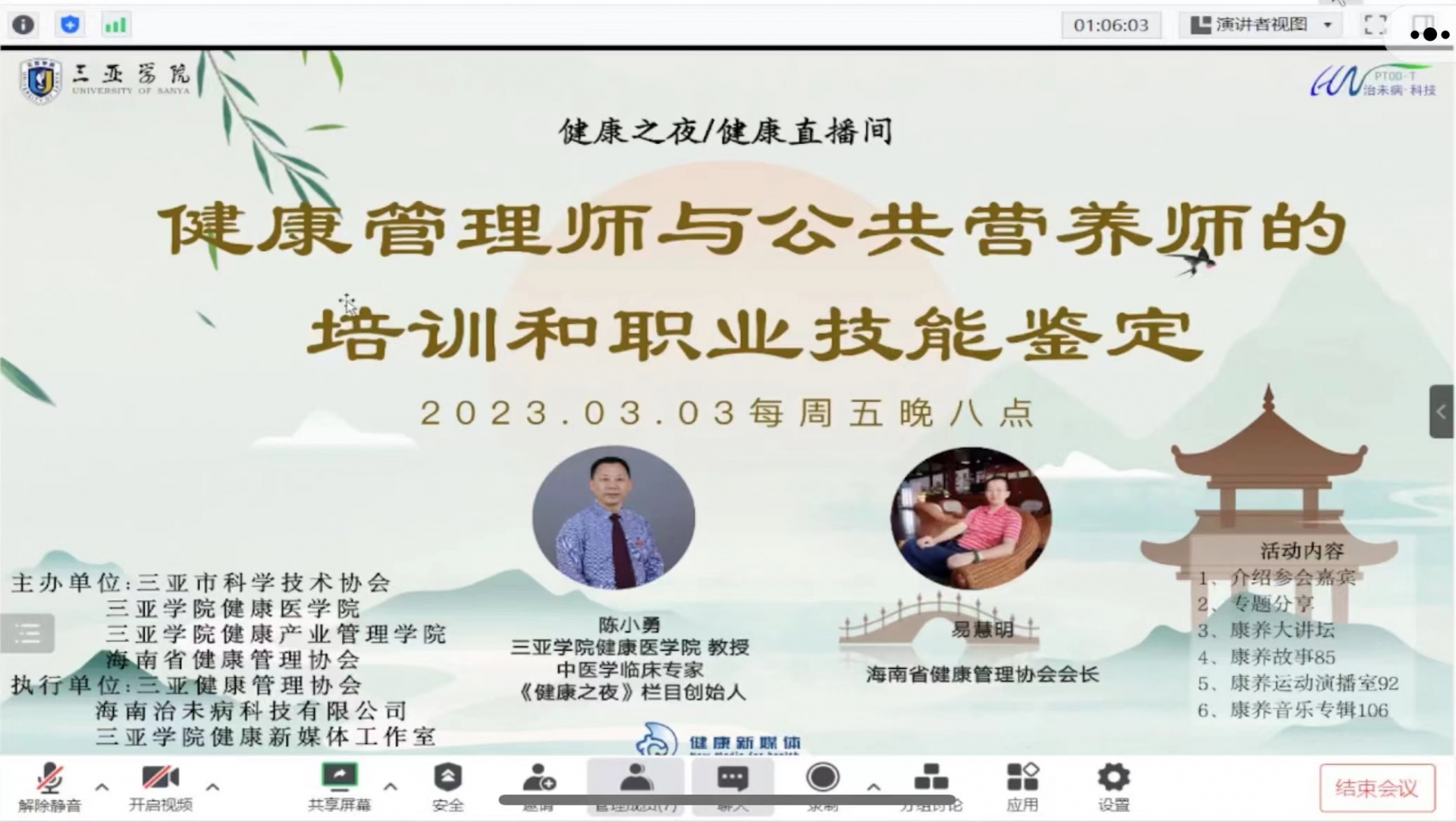 健康之夜|健康管理师与公共营养师的培训和职业技能鉴定