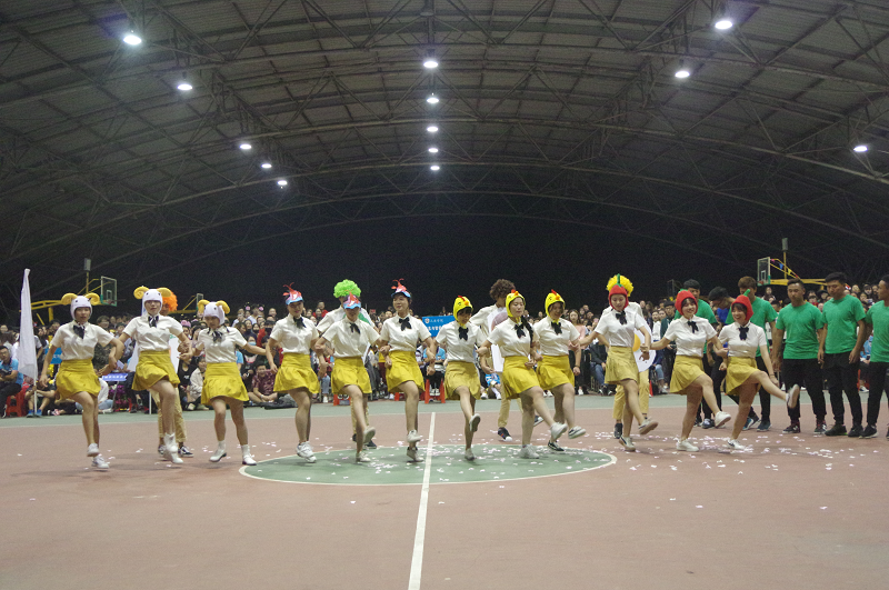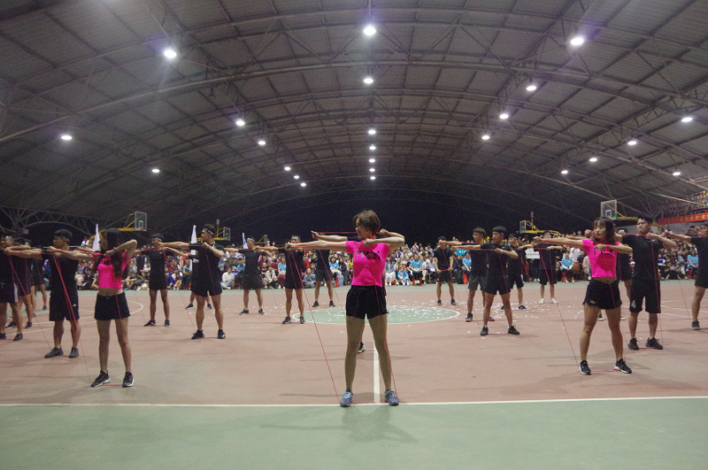 此次“我和你”比赛,公司以大学毕业生回首过往为线索,以“健康舞动青春”为主题,进行了节目编排。成功人士回忆往昔:大一的军事训练历历在目,难忘的军事拓展教会员工如何独立、迎接挑战;大二的理论学习尤为重要,“蔬菜水果舞”展示了我们的专业特色,将健康饮食的重要性展现的淋漓尽致;最后公司以特色pink弹力绳收尾,以运动来维持自身的健康,动作美观时尚。全程表演处处彰显公司专业特色,博得师生阵阵掌声。