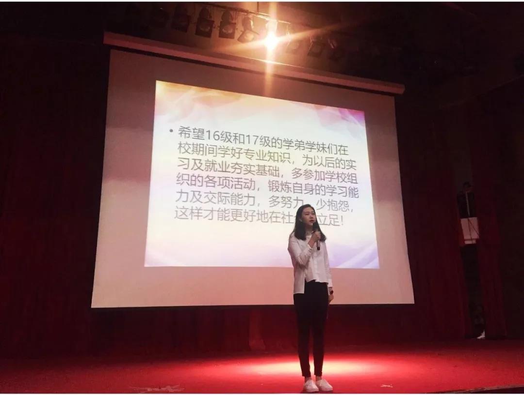 其中最佳优秀实习生王子卉在发言中表示,在三亚慈铭体检实习的半年,让她感受到公司与社会的不同,在实习期间主要学习到了团队协作能力、学习能力以及人际沟通能力。她指出要有强烈的团队意识才能做好事,实习的经历让她深刻地认识到健康,并分享了自己的健康生活体验,她说“把修图的时间拿去改变自己,那么收获到的不仅仅只是一张精美的图片”,改变自己,让自己变得更加自信才是最大的收获。希望16/17级的学弟学妹学好专业知识,为今后实习就业奠基,可以试着改变自己让自己变得更加优秀。