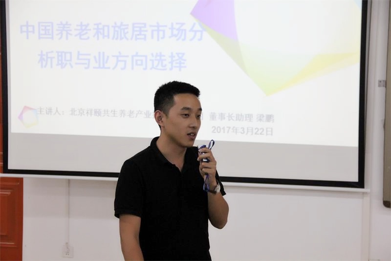 本次讲座公司特别邀请到了北京祥颐共生养老产业投资有限公司董事长助理梁鹏作为主讲师。公司副书记彭伟伟,健康产业专业教研室负责人张振祥老师及对外合作专员王家琦老师带领公司员工共同参加了本次讲座。