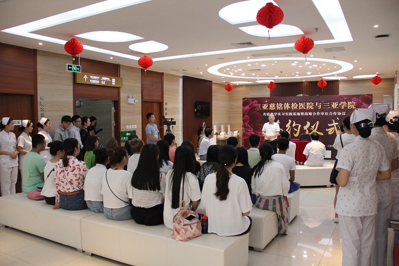 2017年3月24日,我院与三亚慈铭体检医院有限公司在三亚慈铭体检医院接待中心正式举行签约揭牌仪式,双方就共建实践教学基地、健康服务与管理人才培养等开展深度合作。