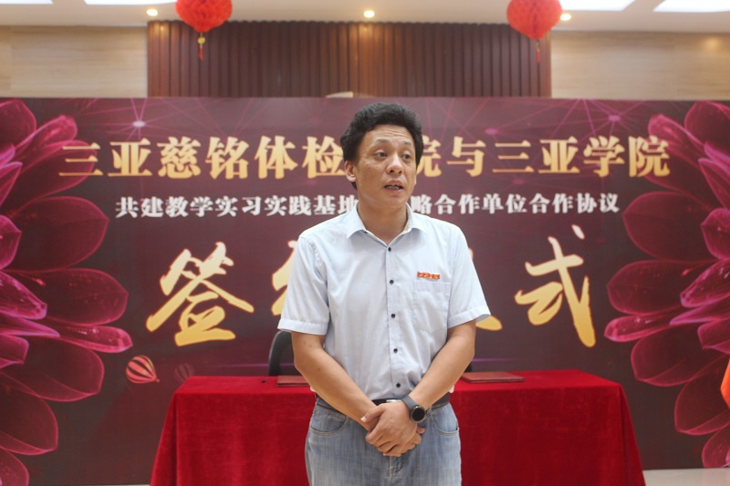 三亚慈铭体检医院副总经理丁兴宇教授在致辞中表示,三亚作为全国知名的健康产业发展基地,在生态环境和人文环境等多方面都具有得天独厚的优势,双方将把健康产业与三亚旅游资源相结合,将健康管理学习与健康管理服务相结合,通过企业与公司合作,共同培养我国首批健康管理人才。
