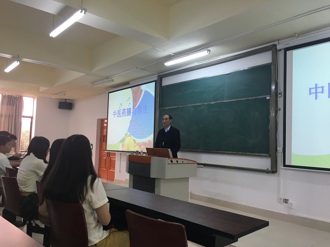 今天,迎来了我们时尚健康产业公司的重要节日“三九养生健康节”。在“药膳食疗研究院揭牌仪式”后,师生有幸聆听了湖南中医药大学教授谭兴贵教授的报告,《中医药膳与养生》。报告生动而富于学识,由浅入深,从中医药膳的概念开启讲座。