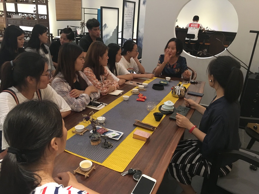 2018年6月,“一方茶席”工作室彭伟伟书记邀请孙爱珍,赵娜娜两位教授前来做客。两位教授从心理学角度围绕“一见钟情是否是真爱”的主题,展开了轻松有趣的茶话座谈会。在茶话会中,孙爱珍教授为我们分享了一些小故事,并分析其中的心理现象和人物人格,幽默风趣,小茶人们积极互动,听的格外认真。