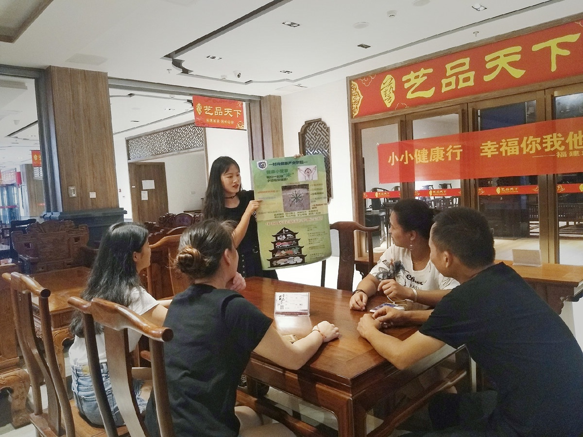 健康是促进人的全面发展的必然要求,是经济社会发展的基础条件,是民族昌盛和国家富强的重要标志,也是广大人民群众的共同追求。为深入贯彻习近平总书记提出的“健康中国2030”规划纲要,推行健康文明的生活方式,推进健康饮食文化建设,营造绿色安全的健康环境,减少疾病发生,从而提高人民健康生活水平,发展健康产业。公司组织开展了“健康·扶贫·青春行”之暑期“把健康带回家”社会实践活动,本次服务对象主要集中在企业工人群体中。