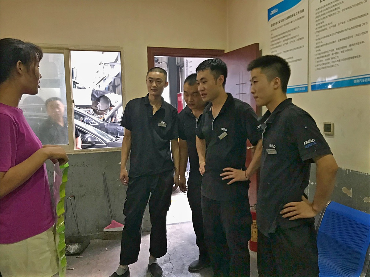 为了将这一活动落到实处,暑假期间,我走进成都德奥汽车服务有限公司进行健康科普宣讲。我于下午两点钟到达公司,趁着休息时间将几个员工聚集起来,向他们介绍了米字颈椎保健操和膳食平衡宝塔。宣讲过程中有一位员工,他看到我们做的“颈椎保健操”和“膳食营养宝塔”海报后,开玩笑的说:“这就简单头部运动嘛,还有这一天能吃饱饭就很可以了,谁还去管食物有多少克呢。”