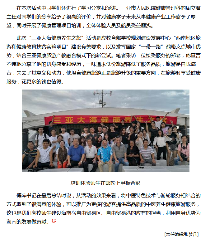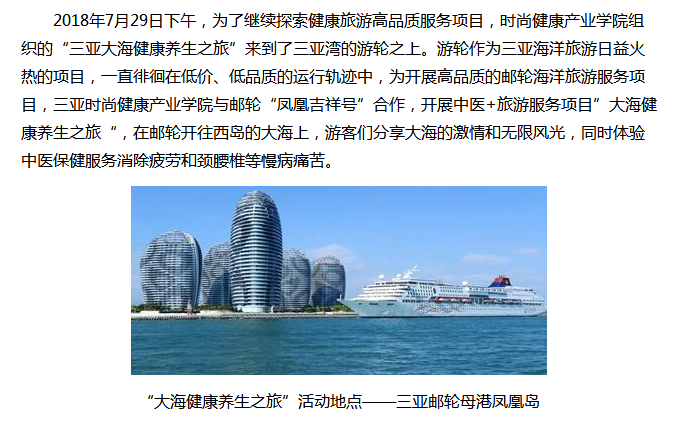 光明网中医频道报道公司在海上邮轮开展健康旅游