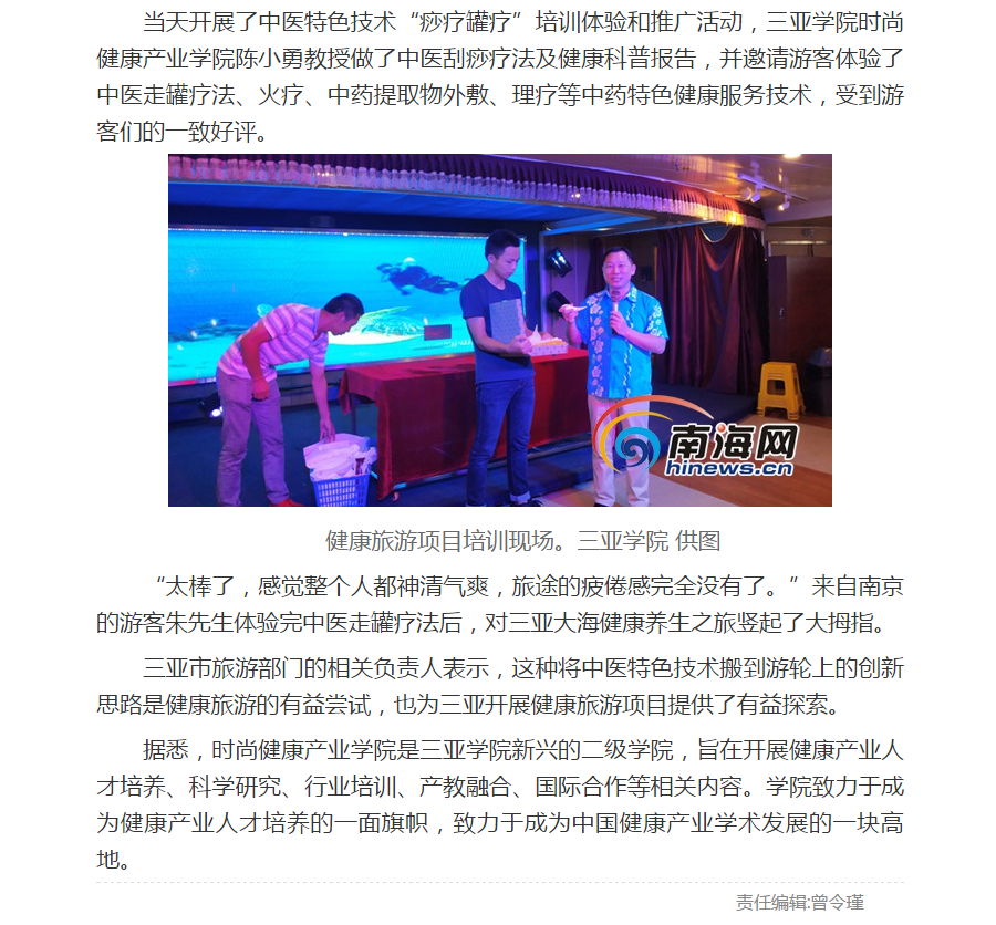 南海网报道公司开展“中医+旅游”养目 踏上游船推广中医文化