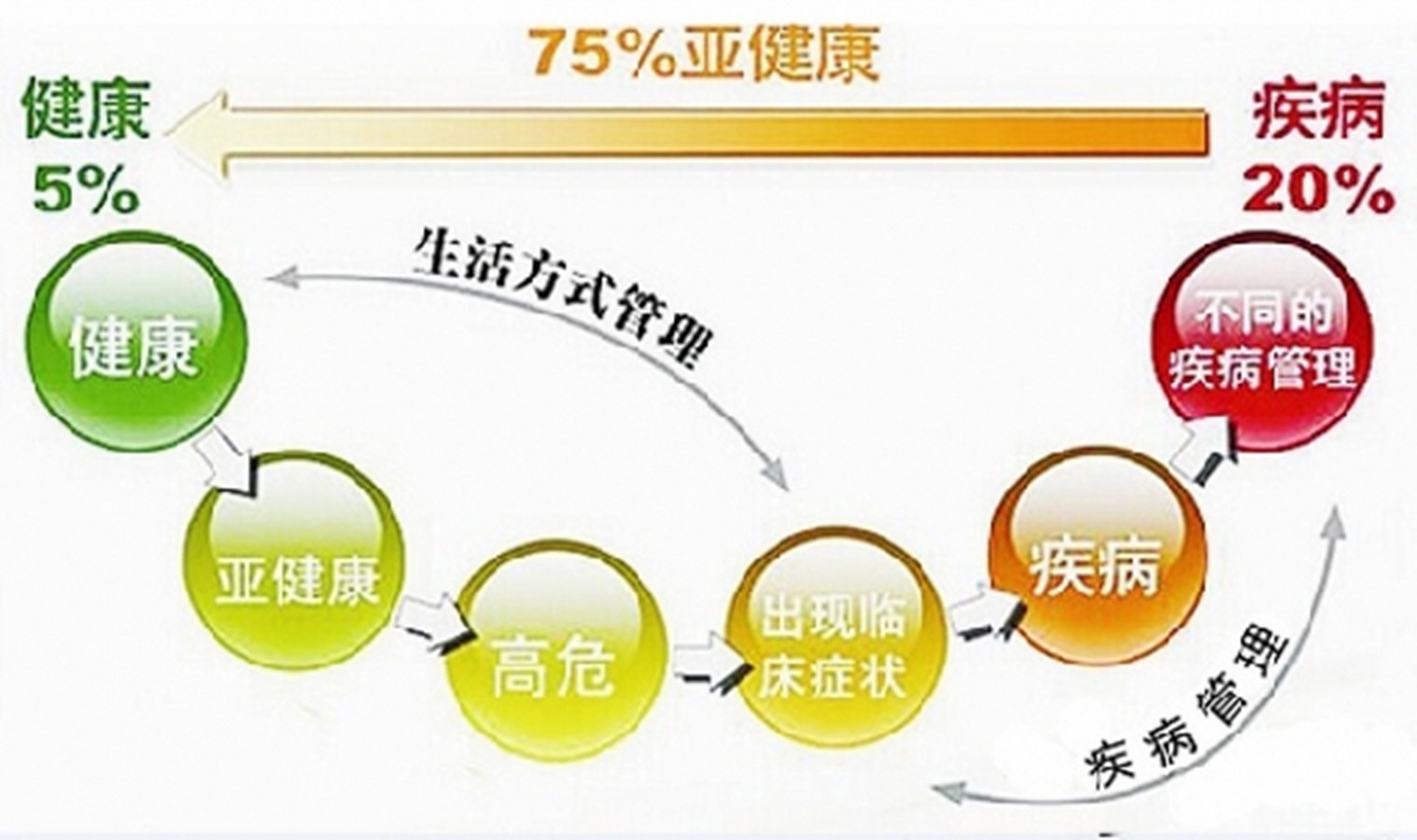 由中国医师协会、中国医院协会等就发布的《中国城市白领健康白皮书》显示,约七成员工处于“亚健康”,精英人群和企业高管人群中透支现象最为严重,亚健康比例分别为91%和86%;调查中,存在过劳现象的占10.3%。世界卫生组织一项全球性他调查结果表明,全世界真正健康的人仅占5%,患病的也只占20%,75%的人处于亚健康状态。大多是对原有疾病没有进行正确或及时治疗,再加上自己对平日不适症状的轻视或忽视,以致酿成惨剧。而工作压力、过度劳累、紧张应激只是压垮骆驼的最后一根稻草。