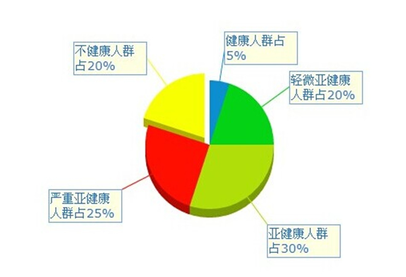 根据国家最新发布的《2017中国人口健康白皮书》中提到的,亚健康已经成为中国76%的人口状态,现代生活节奏快,压力大。据调查我国有9亿人处于亚健康状态,随着我们的物质生活水平的提升,现代人吃的越来越好,但是随着工作节奏与压力的增大,运动得越来越少,休息的时间也越来越少,各种慢性病自然而然就“找上门”了。