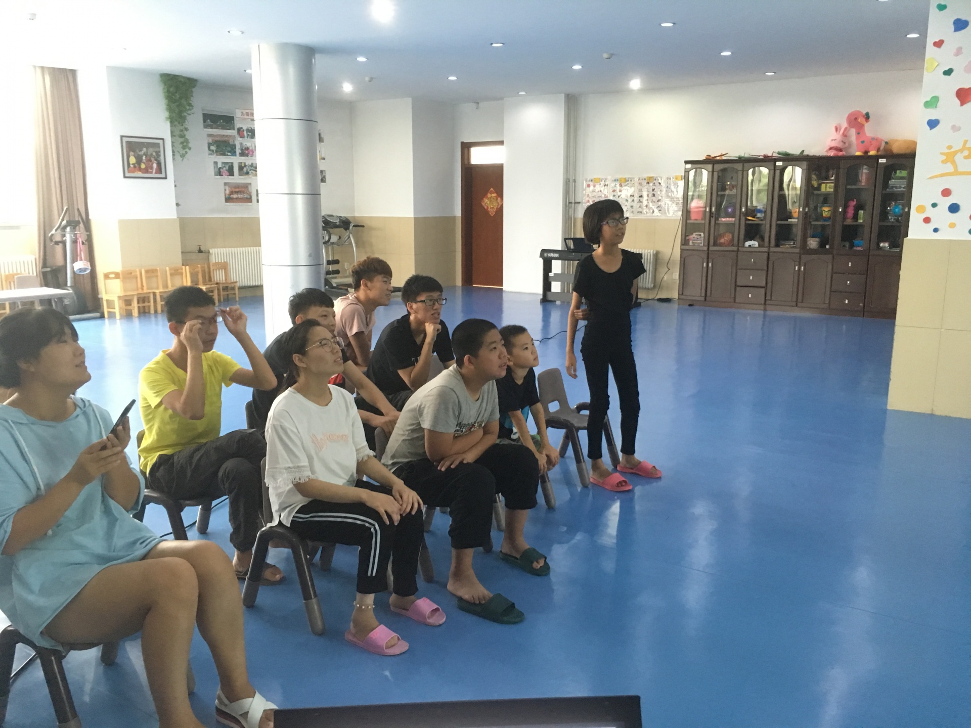 (我与孩子们在一起观看视频)