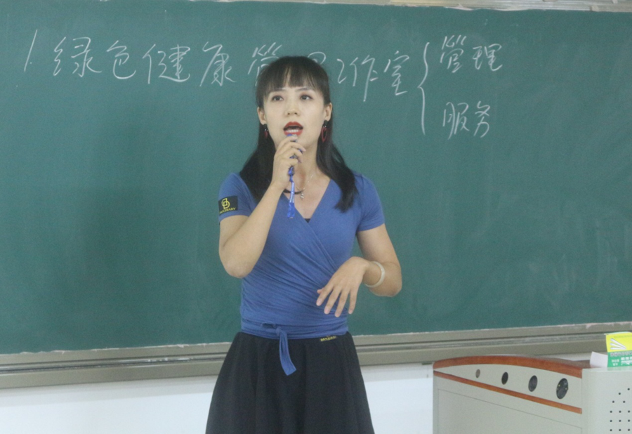 许筱老师对康美工作室的事项进行介绍,许筱老师表示康美工作室是为了健身与康复。同时介绍了工作室的两种服务方式:一是一对一的健康指导,适用于普通人群,患有慢性疾病人群,特殊人群(如:女性产前产后);二是一对多的健康团操,其中包括小型工具的开发并进行体态指导等。许筱老师总结了康美三个板块:舞蹈,团操,私教(提高生活质量与生活品质)。