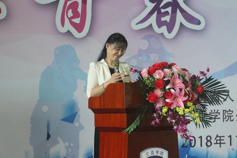 (三亚市政协委员、三亚盛达国际旅行社有限公司董事长侯江萍女士讲话)