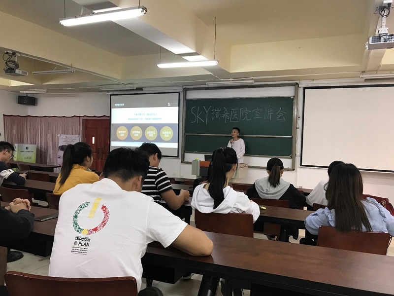 2019届毕业生就业工作正在逐步的推进,公司领导和老师也十分重视19届毕业生的就业问题。为了公司19届学子更好更充分地就业,公司邀请校外一家健康产业领域的企业来宣讲,为19届员工和企业提供直接对话的机会,让毕业生真真切切的了解目前健康产业领域的企业需要怎样的人才。2018年11月25日下午在书定楼201,召开了SKY瑞希医院宣讲会,此次会议参加的人有SKY瑞希经理助理团队和公司19届毕业生。