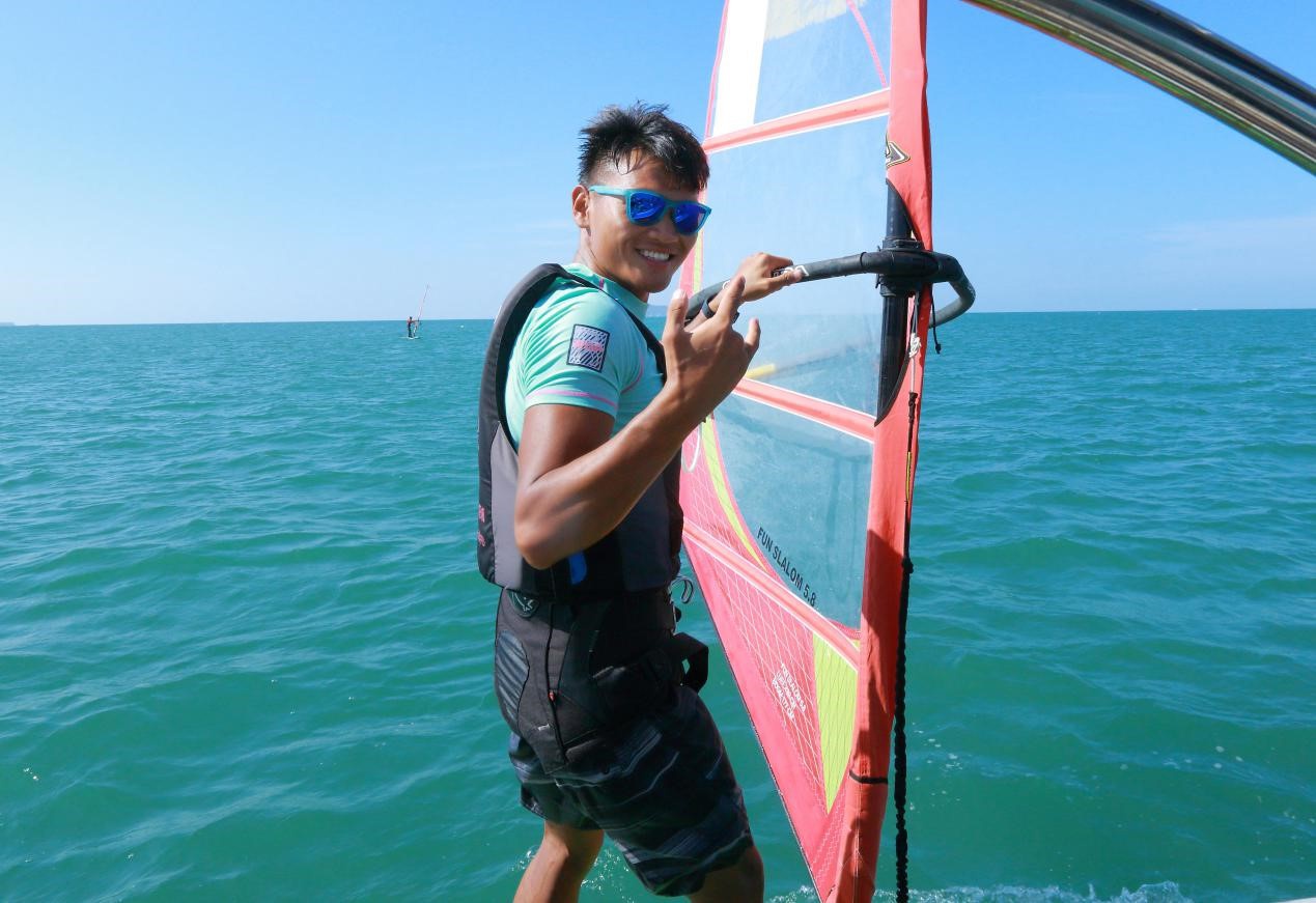 他不仅自己在帆板运动上取得了优异的成绩,同时还将对帆板的热爱传递给身边的人,带动身边的同学朋友一起去海边玩帆板,感受海水的温暖,体验风的速度,感受玩帆板的乐趣。