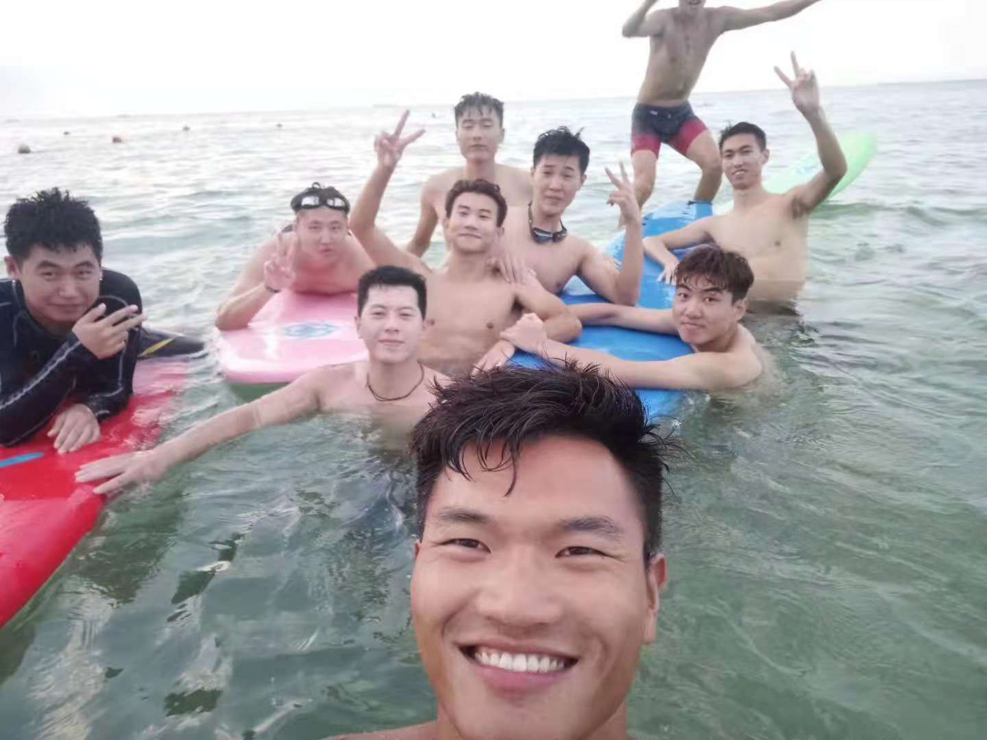 (王林云学长带领同学朋友们玩帆板)