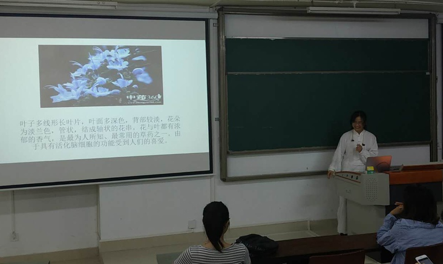 根据流程,首先由工作室成员何芸霞进行工作汇报。何同学给大家分享了一味实用价值非常高的药材-迷迭香。她从自身的经历出发,举了高考前复习食用迷迭香茶来改善记忆能力提高复习效率的例子来说明其食疗价值。此外,她还介绍了迷迭香的其他功效(比如改善语言、视觉、听力方面的障碍,增强注意力,治疗风湿痛等)以及食用禁忌(高血压、癫痫患者以及怀孕期间避免食用)等。她建议到,具有较大学业压力的初高中员工可以适量服用迷迭香食疗方来提高学习效率。
