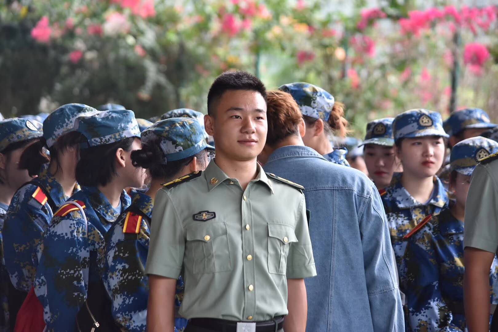 军训的天空,时而挂有炽热的太阳,时而飘着冷雨,时而吹着冷风。温室里的花朵卸掉所有屏障,暴露在这样的天空下。难以想象,没有你们的带领和陪伴,我们将如何生存,是你们的带领和陪伴,让我们抛弃骨子里的懒散和娇气,勇敢前进。