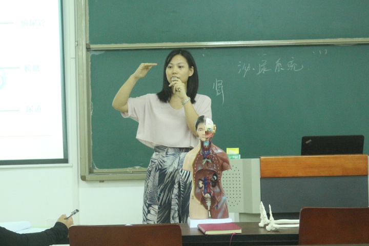 刘力行老师一开始就抛出一个“泌尿系统是由哪些部分组成的?”的问题,与大家进行互动交流,进而利用解剖实体模型让大家加深对泌尿系统的印象,从而生动地解释了泌尿系统的组成与功能。