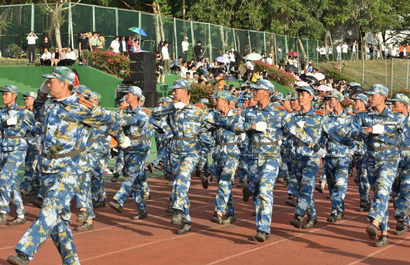 伴随着欢快的节奏与音乐声的体育公司的开场舞,就此拉开了军训汇演的序幕。首个出场则是各个公司标兵队的汇演,军歌的旋律响起下,各个公司的方阵列得整齐步伐矫健有力,每句口号回荡天际,每个动作如臂使手,每次落脚铿锵有力,每个方阵气贯长虹,在军训的锻造场中他们的精神面貌是那么的昂扬向上,成为了冬日暖阳中一道迷人靓丽的风景。