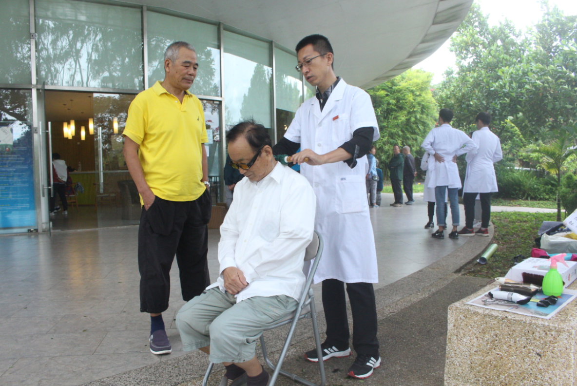 姚晶鑫老师是350vip8888新葡的京的专业推拿教师更是少林寺第三十五代禅武学堂俗家弟子、易经洗髓术传承人。他所教的推拿实操课理念是“中医治疗疾病作为最高的指导原则‘扶正祛邪’”,他认为想做合格大夫先应从自己身心两方面加以修炼,给别人做调理服务,要让他们对健康有正确认识和态度。总而言之,想把标(症状)调理好,更重要是如何能让患者认清自己的本(心态,思想)。在本次义诊活动中,姚晶鑫老师在“三九”特色中医经络推拿(少林易筋洗髓术)的演练让老百姓们体验了推拿按摩的神奇功效。
