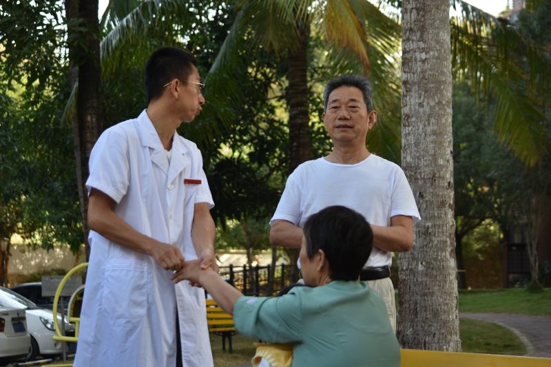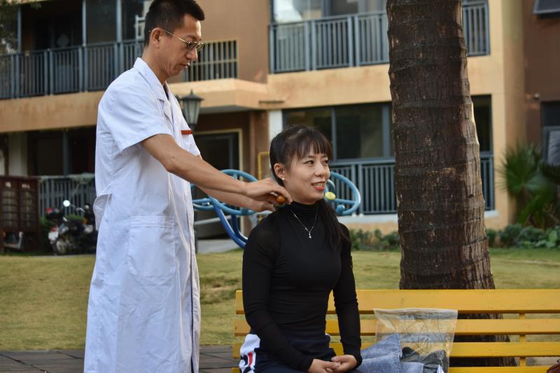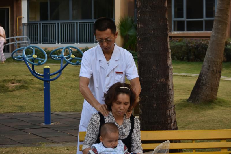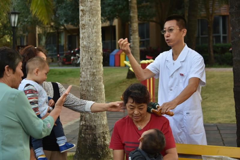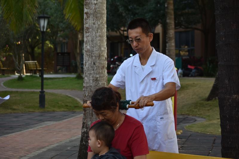 (康美工作室成员为居民讲解“三九养生健康节”内容)新葡的京集团350vip8888应时代发展要求,利用三亚“天然温室”的独特气候,结合“三九养生,膏方调理”的传统养生观和新兴的健康旅游模式,开设康美工作室,推动健康产业的发展,并在“三九养生健康节”期间由康美工作室提供常见疼痛病症的运动康复手法治疗(根据身体不同部位,如颈、肩、腰、腿出现的疼痛进行特色的康复治疗,康复手法柔和、渗透,可有效缓解病痛)。