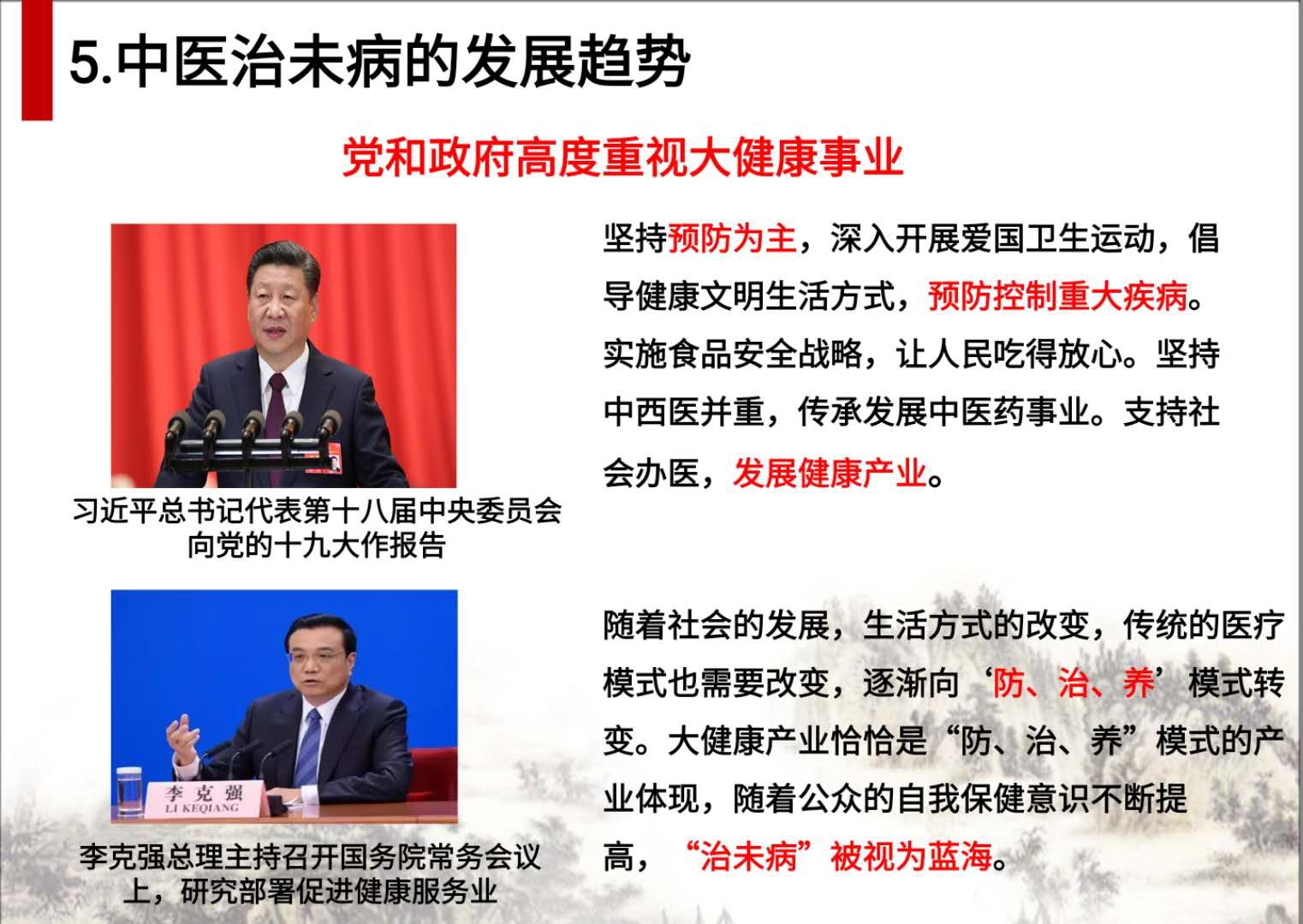 陈涤平教授指出治未病是一种理念,人类现在已经进入到了大健康的时代,而大健康是根据时代的发展、社会的需求与疾病谱的改变而提出的一种全局的理念。如今,健康产业已经成为了人类命运的发展方向。