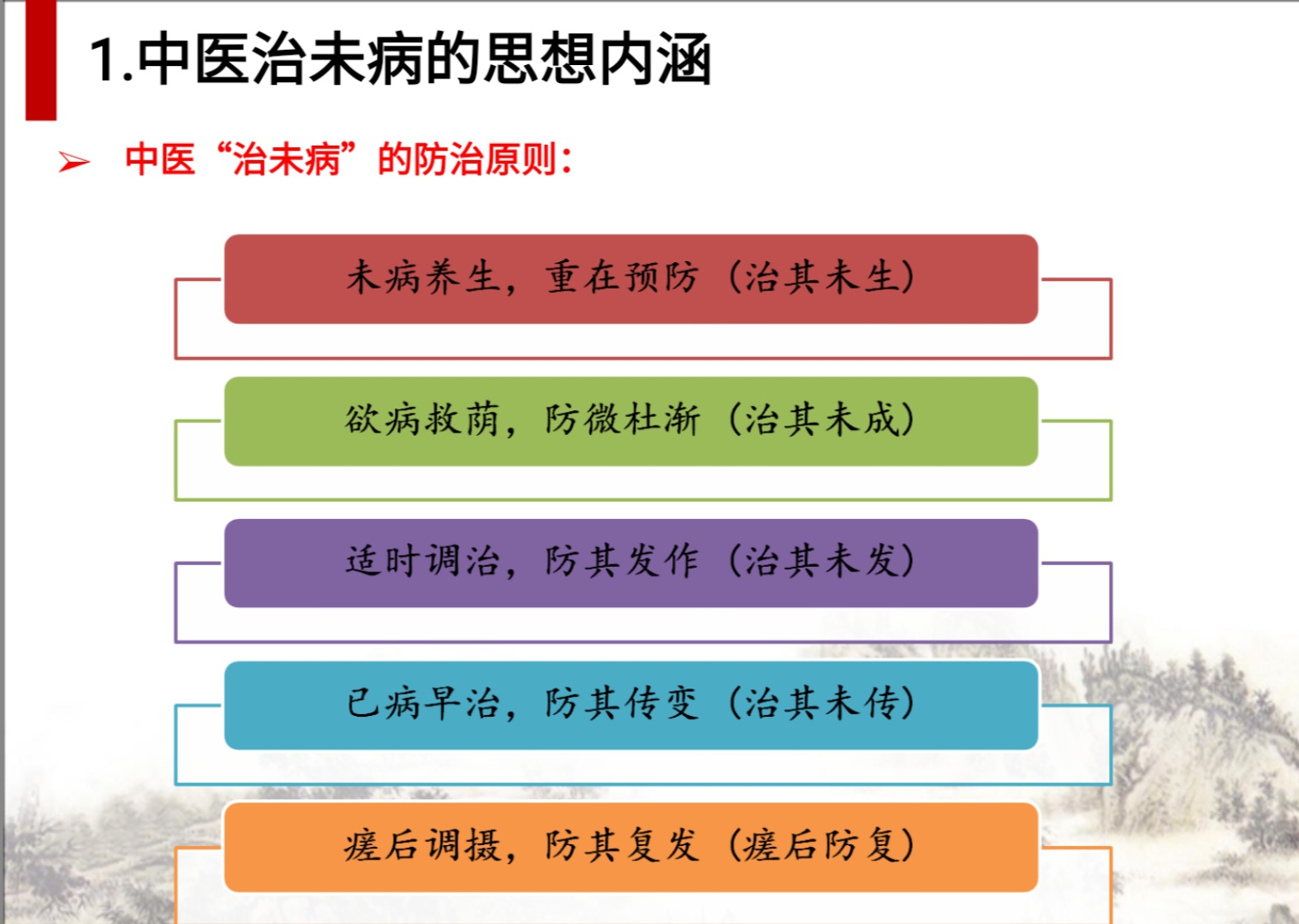 现在我们已经进入到大健康的时代,大健康是根据时代的发展,社会的需求,以及治病的改变提出全新的理念,成为人类发展的方向。随着人们对中医治未病的传承发展和创新,中医治未病的理论和方法必将为人类解决健康问题开辟一条光明的道路,必将成为大健康时代主流医学的重要内容,一定能为人类的健康做出巨大贡献!