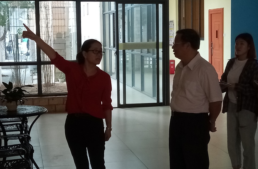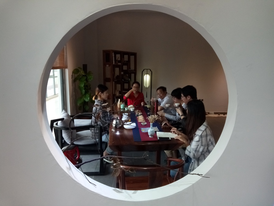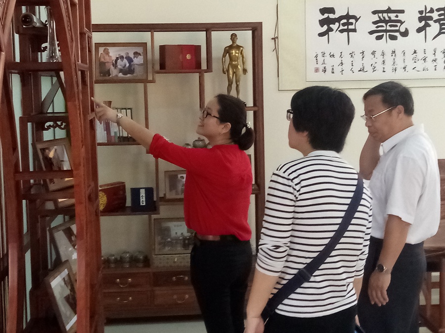 傅萍副经理为来宾详细介绍公司的发展历程以及未来的发展规划,并带领参观公司各健康工作室,讲解落笔文化。同时,在茶与健康工作室品析海南黎族茶文化,并深入探讨各自的教学方向及人才培育,对如何培养健康产业复合型人才进行经验交流。