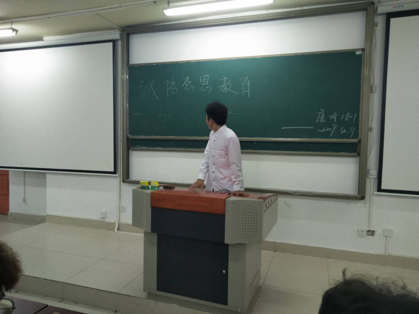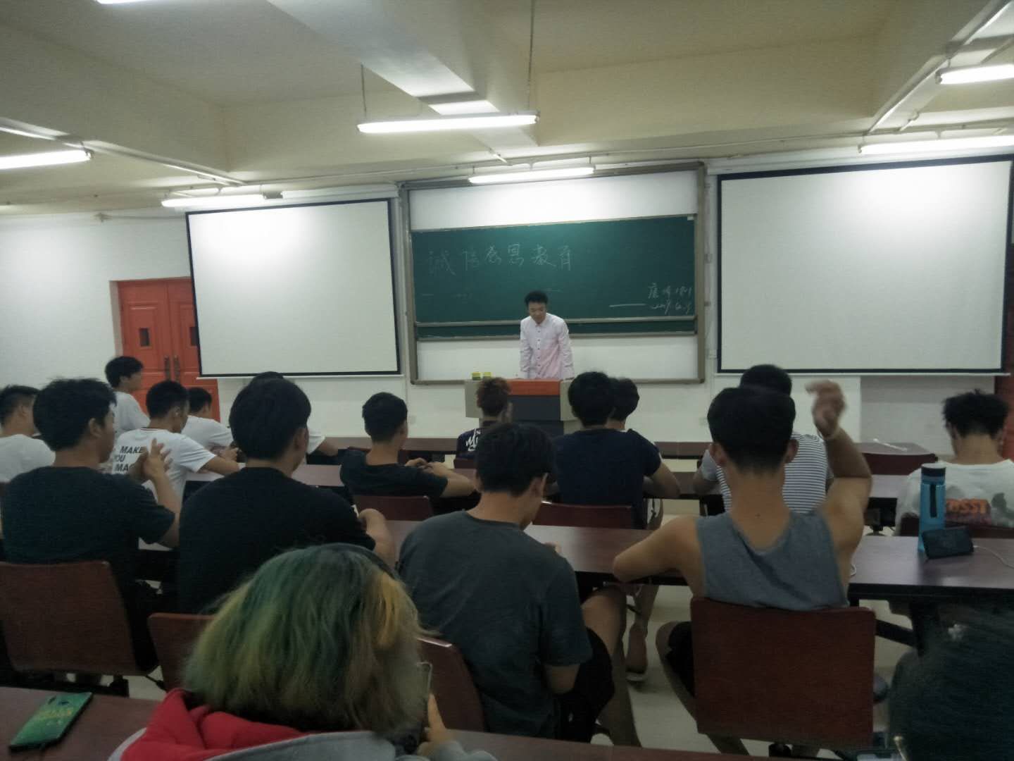 2019年4月11日,康体1801班于书定楼召开了“诚信感恩教育”主题班会。本次召开主题班会的目的有:1.结合实际生活与学习中的事例来说明感恩、诚信的重要性。2.我们在以后的生活中感恩、诚信教育是否需要展开讨论。3.同学们表态一定要做一个知感恩、讲诚信的人,为了他人更为了自己。