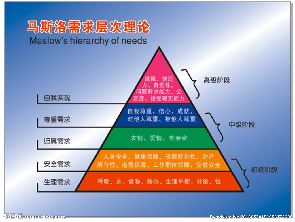 心理学家马斯洛指出,人类的基本需要可以分为生理需要、安全需要、情感的需要、自尊需要、自我实现的需要,其中自我实现的需要建立在其他需要的前提之下,在工作能够体现自我价值,变成了一种兴趣的时候,人就会以工作为乐,而不是以工作为负担。一旦工作变成了一种兴趣,就会变被动为主动,要我做也就顺其自然成了我要做。