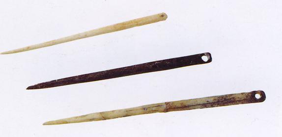 人类最初的服饰只是就地取材。山顶洞人脱离了四肢着地的生活后,最先是遮身蔽体、抵御风寒,然后才慢慢产生了人类最初的道德感。他们不愿再赤身裸体地示于众人之前,于是那些兽皮、树叶便成了中国服饰最早的材料。他们将兽类的骨头做成骨针,对兽皮进行连接,用动物牙齿、石头、贝壳等来进行点缀。在山顶洞人的古墓中,考古学家发现了各种做工粗糙但足以记录人类审美初萌的装饰品,这些东西正是中国服饰的雏形。野麻纤维的出现让中国服饰进入手工业时代。服装不再仅仅用于避冷遮羞,更趋于审美与舒适性。这时野麻纤维被发现,织麻布,做成衣,衣服一跃而成为人类生存的重要物质基础。这中间经历了多少曲折,又有多少巧合与智慧的碰撞,才最终让真正的布料服饰取代了兽皮时代。考古学者发现,在新石器时代,蚕已经成为人们的驯化饲养之物。到了商纣王时代,君王经常用丝织品奖赏美女。这些都告诉我们一个事实:树叶、野麻作为中国服饰原材料的时代已一去不返,丝绸已经成为中国服饰的主流。