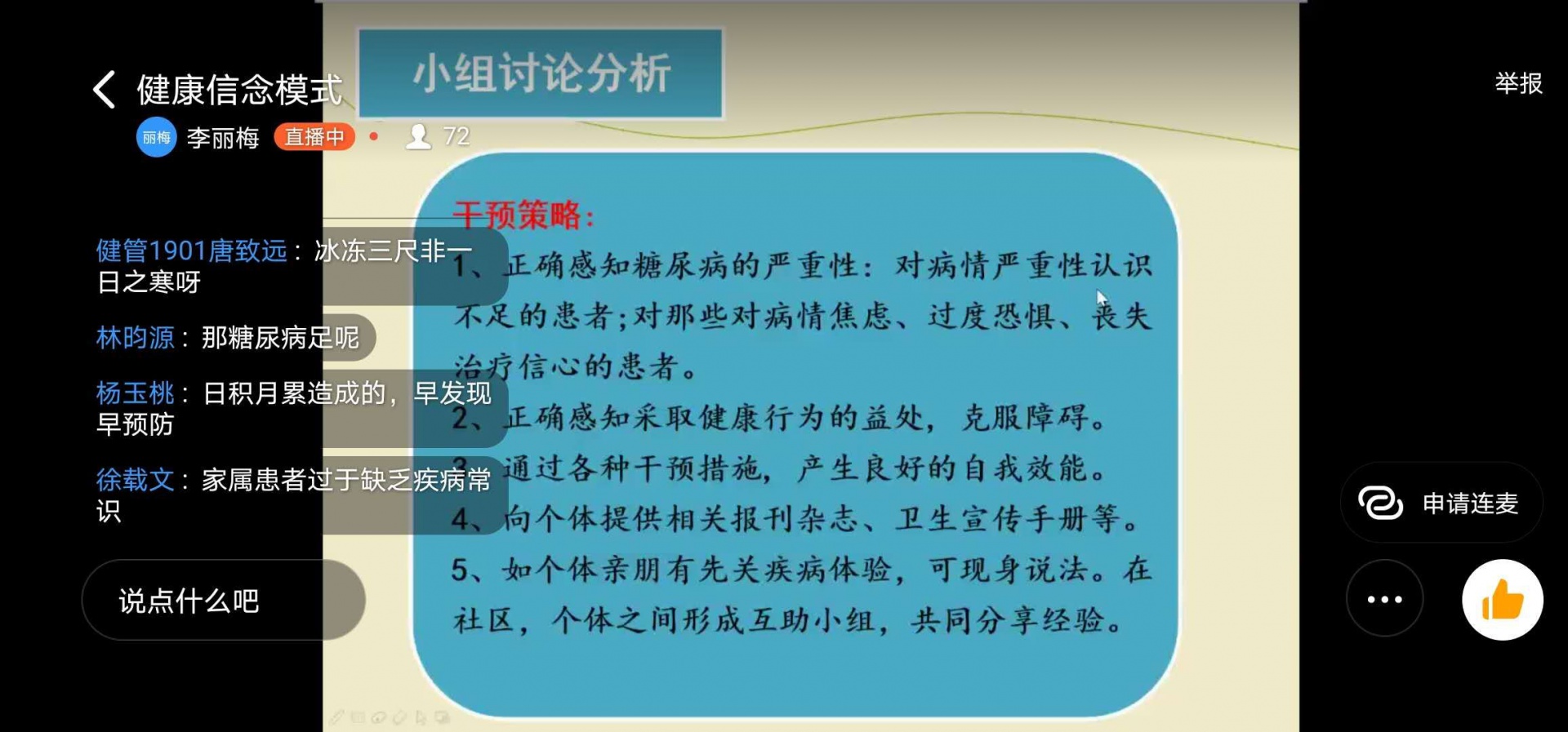 (李丽梅教授通过案例解读健康信念模式知识点以及员工作业展示)
