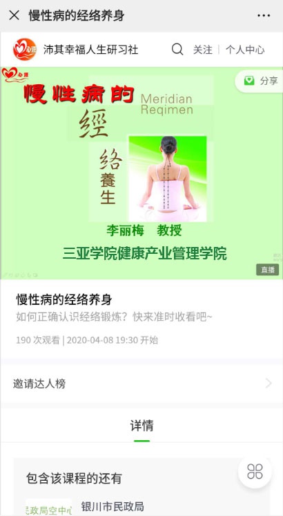 (李丽梅教授课前播放北京卫视养生堂视频)
