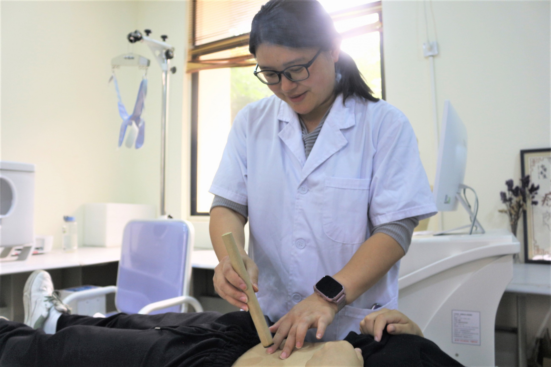 活动第二项,由赵帅老师给我们展示艾灸的治疗手法。艾灸是用艾草作为原料,特制成灸炷在体表一定的穴位上烧灼,熏熨。利用温和的热力以及药物的药效力,通过经络的传导,起到温通气血,扶正祛邪,从而达到治疗疾病的作用。