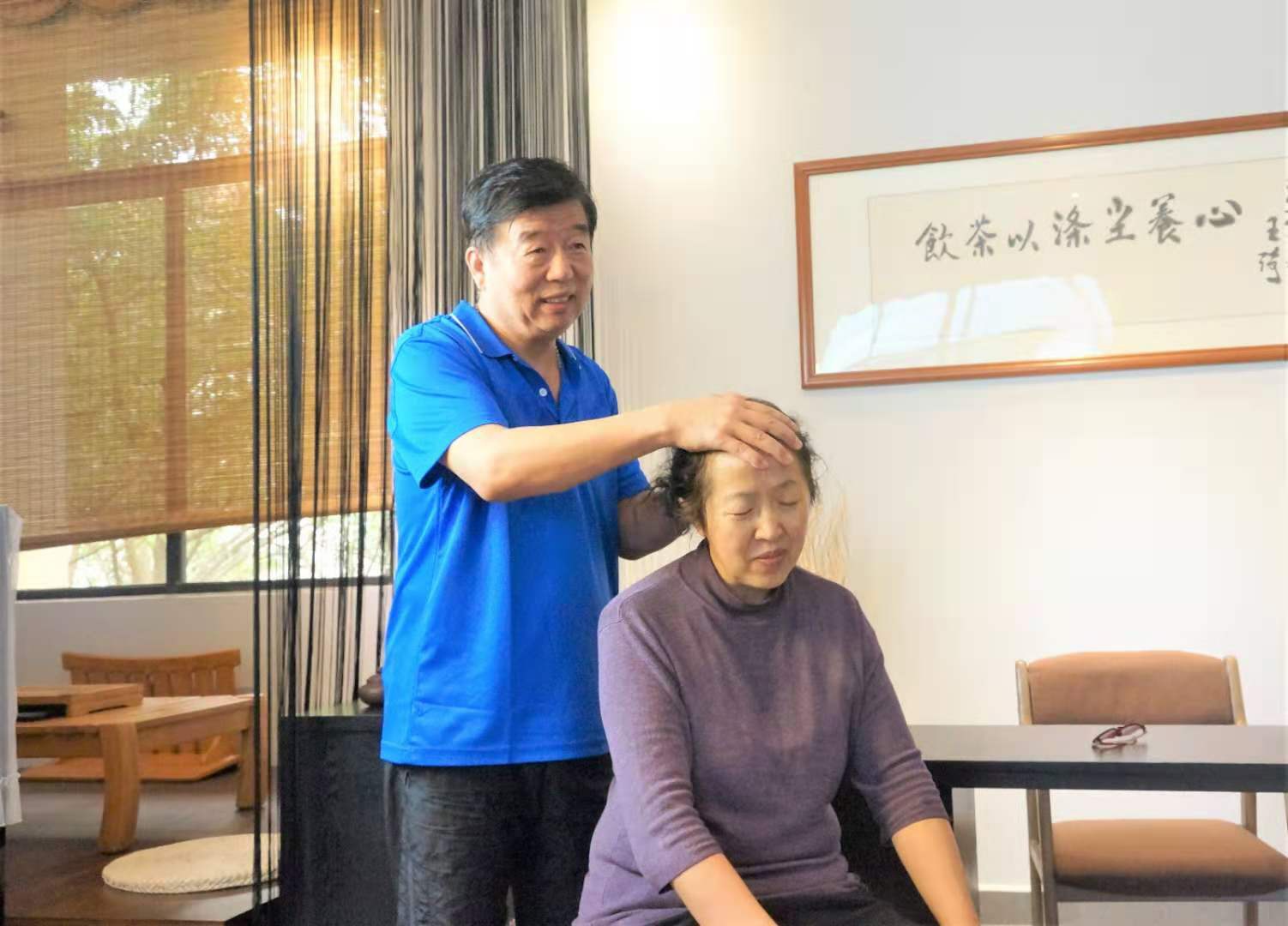 接着杨济教授为我们展示了推拿手法。中医推拿是重要外治疗法常见的一种,它以经络理论为指导,强调人体体表通过经络、穴位与内脏之间存在的联系,对体表经络、穴位进行推拿刺激。推拿通常是由医者运用自己的双手作用于病患受伤的部位、特定的腧穴,运用推、拿、按、摩、揉、捏、点、拍等形式多样的手法,达到以下功效:(1)疏通经络。在中医理论中经络不通则百病丛生,疏通经络对于预防疾病以及治疗疾病具有很强的作用,可以使机体的新陈代谢得到提高。(2)调和气血。通过按摩的方式可以使血液黏稠度降低,降低周围血管的阻力,对于减轻心脏负荷以及治疗高血压都有一定的效果。(3)提高机体的免疫力。机体免疫力是人体重要的屏障,通过按摩的方式可以使其提高。