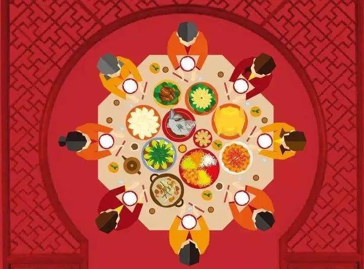 除夕可以没有绚烂的烟花,也可以没有彻夜的明灯,但绝对少不了年夜饭。年夜饭也叫团圆饭,是一年一家人团聚一起的时刻。根据南朝宗懔《荆楚岁时记》的记载,至少在南北朝时我国已有吃年夜饭的习俗。因为正值冬天,北方人常常在饭桌中间设置火锅,因此也称围炉。古代,一些监狱官员甚至在除夕晚上放囚犯回家与家人团圆过年,可见年夜饭在古代人生活的重要性。除夕之夜,丰盛的年菜摆满一桌,阖家团聚,人们既享受佳肴美食,也享受那份快乐祥和的气氛。年夜饭一般少不了两样东西,一是火锅.一是鱼。火锅沸煮,热气腾腾,温馨撩人,说明红红火火;"鱼"和"余"谐音,象征"吉庆有余",也喻示"年年有余"。