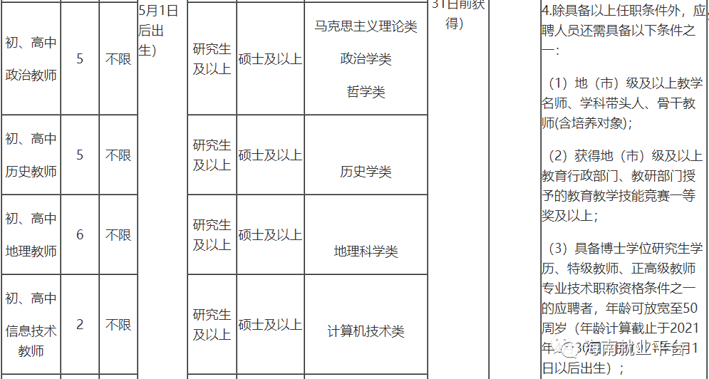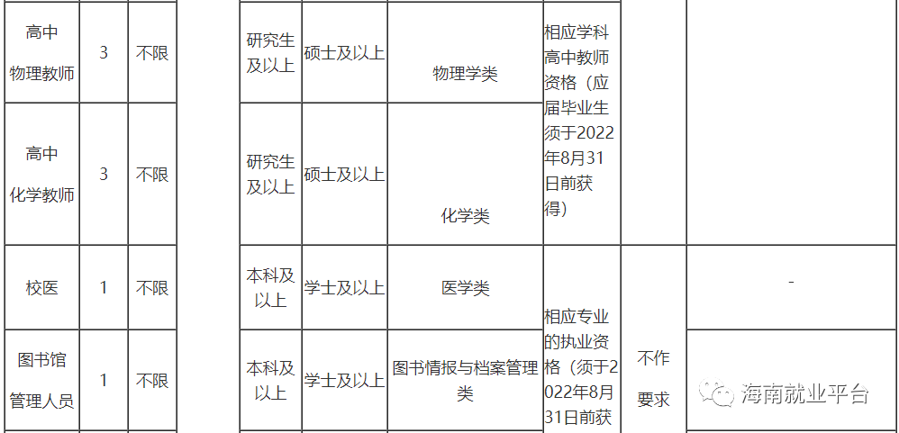 4.符合招聘岗位规定的资格条件(详见《海南中学公开招聘教师和管理人员计划表》);