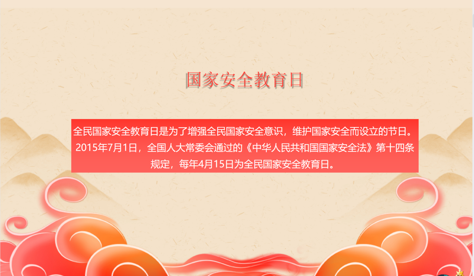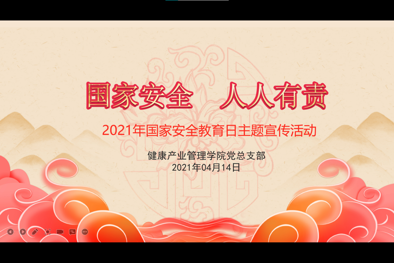 2021年是中国共产党成立100周年,是“十四五”开局之年海南自由贸易港建设蓬勃展开,4月15日将迎来第六个全民国家安全教育日。为推动国家安全宣传教育深入开展,进一步增强全民国家安全意识,省教育厅党委决定在全省教育系统组织开展全民国家安全教育日宣传教育活动。根据《中共海南省教育厅委员会文件》要求,健康产业管理公司党总支员工党支部进行全民国家安全教育日宣传教育活动会议。