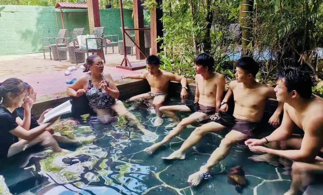 《休闲体育概论》是本学期公司邓并教授为康体2001班开设的一门课程,旨在使员工们对休闲体育这种风行的社会现象得到更加深入的理性与感性认识,并在此基础上,在今后的职场和生活中不断地利用休闲体育的各种社会功能,以促进休闲体育研究及其相关活动的开展。鉴于此,在邓并老师设计和推动、半岭温泉集团、公司和公司的大力支持下,一堂实打实的《休闲体育概论》实践课在半岭温泉上演。2021年4月15日清晨,邓并老师带领全体同学来到到半岭温泉,受到贵集团胡媛媛经理的热情接待,并认真介绍了温泉与娱乐区域的各种设施,特别是强调了安全注意事项。毋庸置疑,这是一次生动有趣的教学尝试,你看看同学们多么享受课堂的内容!在活动过程中,邓并老师还在不断讲解课程内容,特别是引申至我们对未来职业的规划与思考。众所周知,温泉是目前休闲活动的重要形式之一,特别是由于温泉水中含有多种矿物质微量元素以及温泉水的高于常温水的温度,泡温泉给人体的健康带来诸多益处,它可以使肌肉、关节松弛,达到消除疲劳的功能;扩张血管,促进血液循环;活络筋骨,减轻酸痛。而且还对很多疾病具有医疗作用:肥胖症、运动系统疾病、神经系统疾病,早期轻度心血管系统疾病、痛风、皮肤病等。 同时我们也深知,长期缺乏运动使得“现代文明病”、“心理疾病”等成了困扰国民体质和健康的重要杀手。