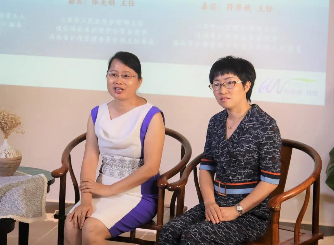 (三亚中心医院护理部主任、副主任护师符岸秋老师(左)三亚市人民医院护理部主任、副主任护师张美娟老师(右)发表讲话)