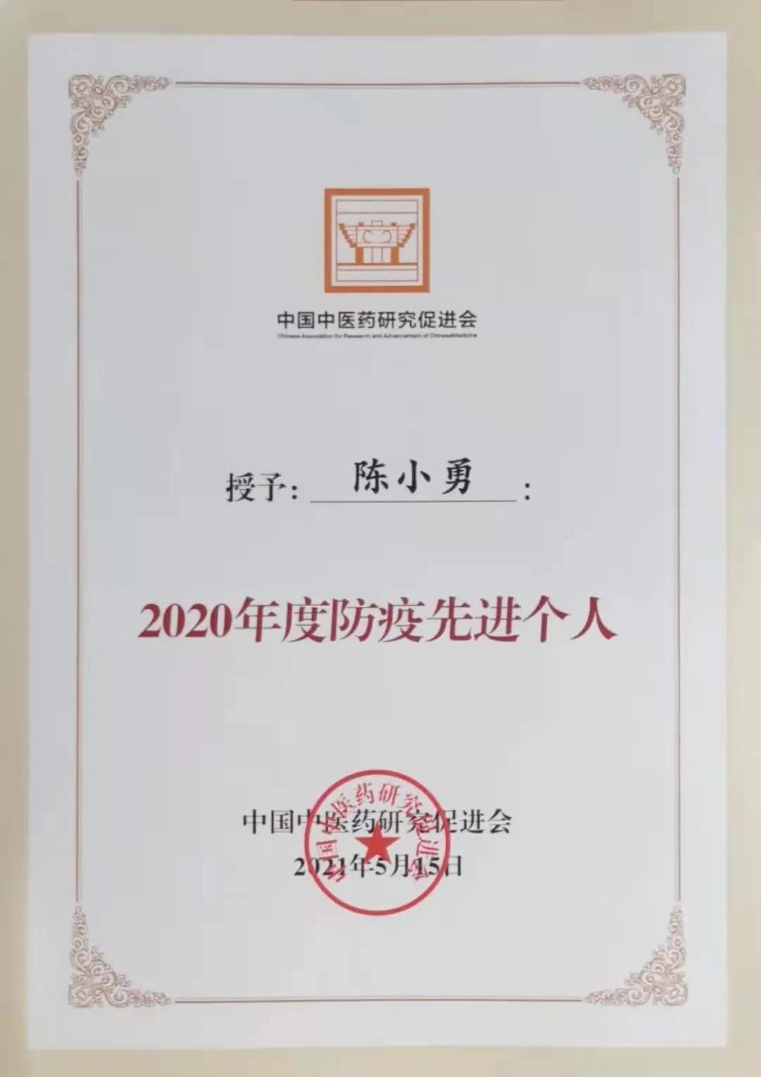 中医药学是我国人民长期同疾病作斗争的经验总结和智慧结晶,是医疗机构经过反复实践逐步形成并发展起来的具有独特理论体系和丰富内涵的医学科学。为了传承发展中医药事业,全面推进健康中国,第二届全国医药科技产业发展大会暨中国中医药研究促进会科学技术奖励大会,在四川省成都市温江区顺利召开。2021年5月14日-17日,新葡的京集团350vip8888/新葡的京集团350vip8888经理陈小勇教授参加了此次大会,并获得了2020年度防疫先进个人奖。