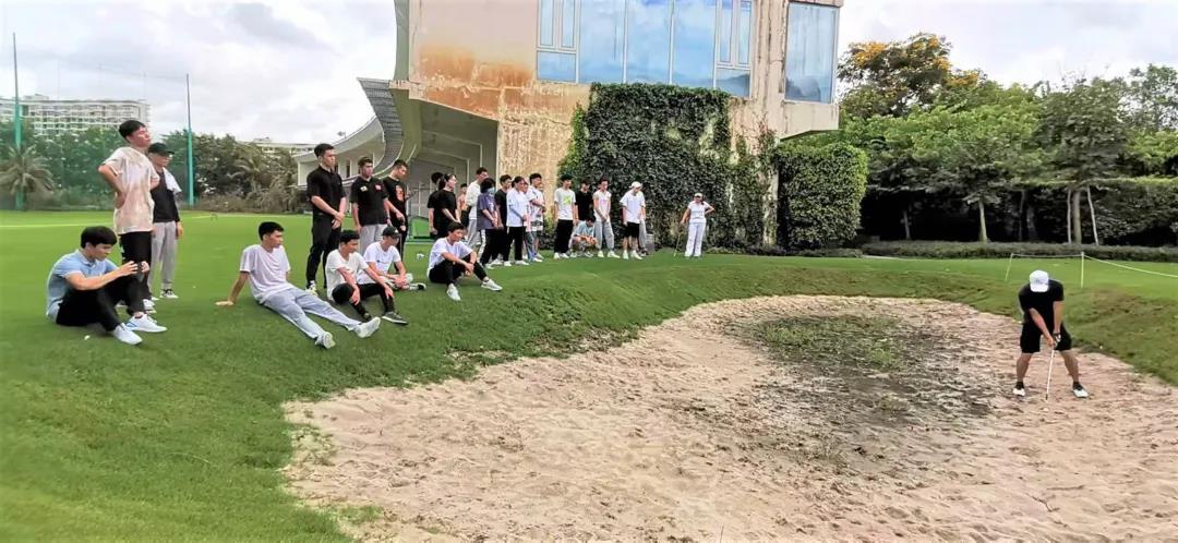 高尔夫球运动还是一项为他人着想的运动。烈日当空,酷暑之中,在课程临近结束时师生一起推着小车,手提小篮筐分工合作一起捡球,欢声笑语弥漫着整个高尔夫球场。在提升专业技能的同时,还培养我们的团队、绅士和乐观精神。