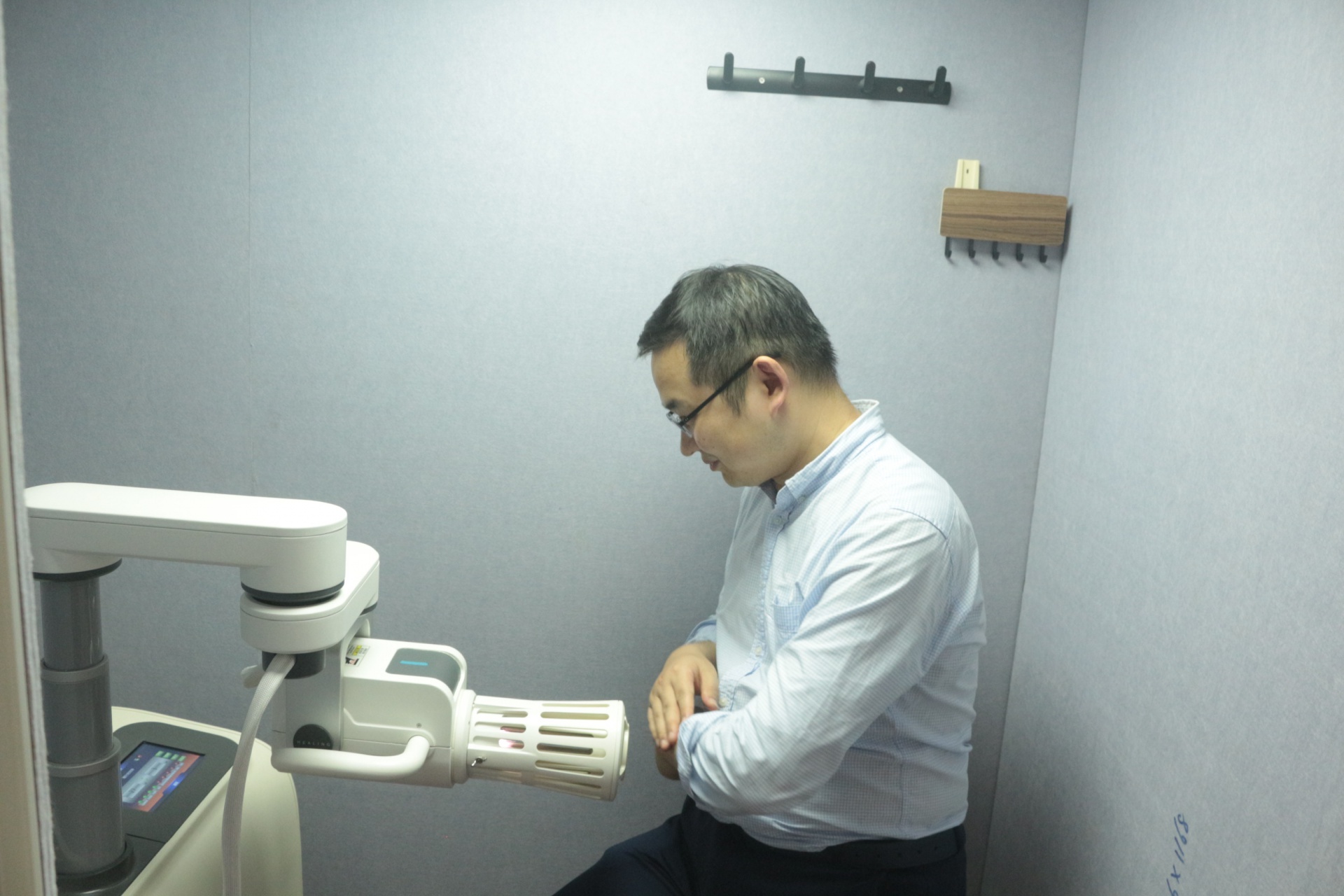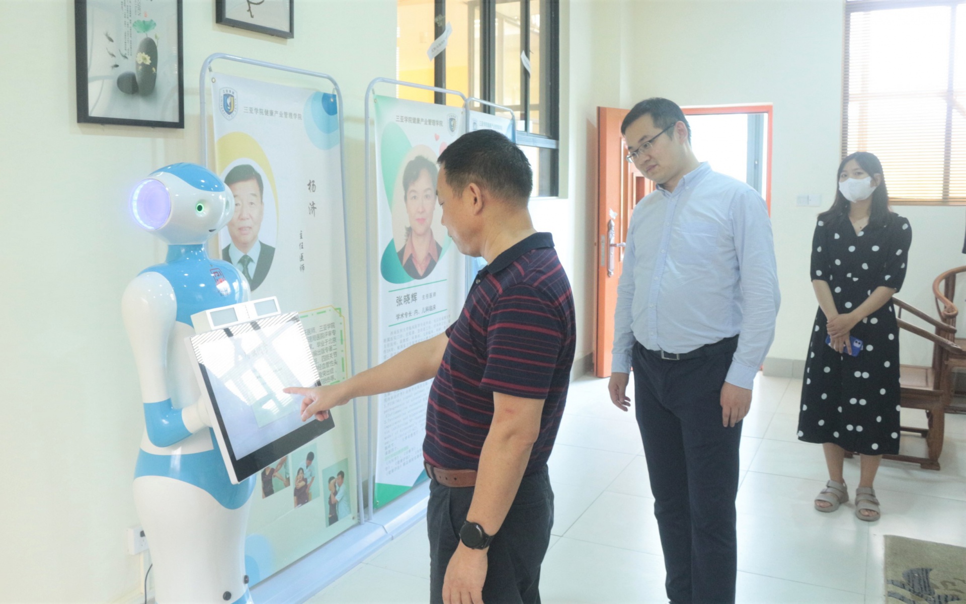 提到人工智能相信大家都不会陌生,无论是各式各样的手机,亦或是不断推陈出新的家庭智能机器,现代生活中的方方面面都有着人工智能的身影。突如其来的疫情也加速了智能医疗设备的发展,促使着人工智能与医疗方面的不断融合,出现了众多人工智能+医疗方面的新产品。在结束人工智能讲座之后,陆慧敏博士与陈小勇教授移步至书定楼,体验健康诊断机器人等新型设备。