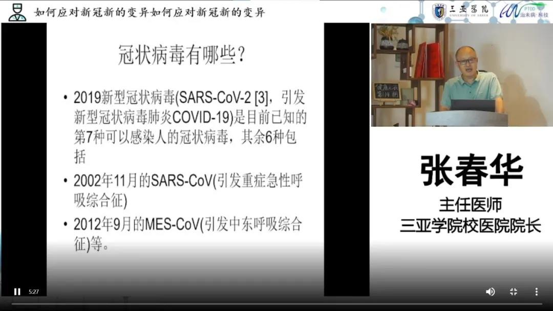 直播伊始,新葡的京集团350vip8888校医院经理张春华医师给我们分享新冠疫情在国内的进展,并解释了RNA病毒容易变异的原因以及冠状病毒的类型。张春华医师表示,病毒变异提醒我们应理性对待抗病毒药物。同时,我们无法预测病毒变异的模式和走向,只能在流行后逐渐认识其特性。当然也无需恐慌,变异是正常的也是可控的,我们只需要牢记:注意防护不放松,早诊治早干预。