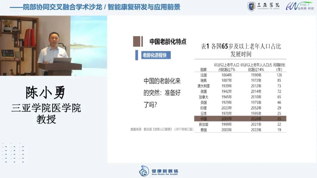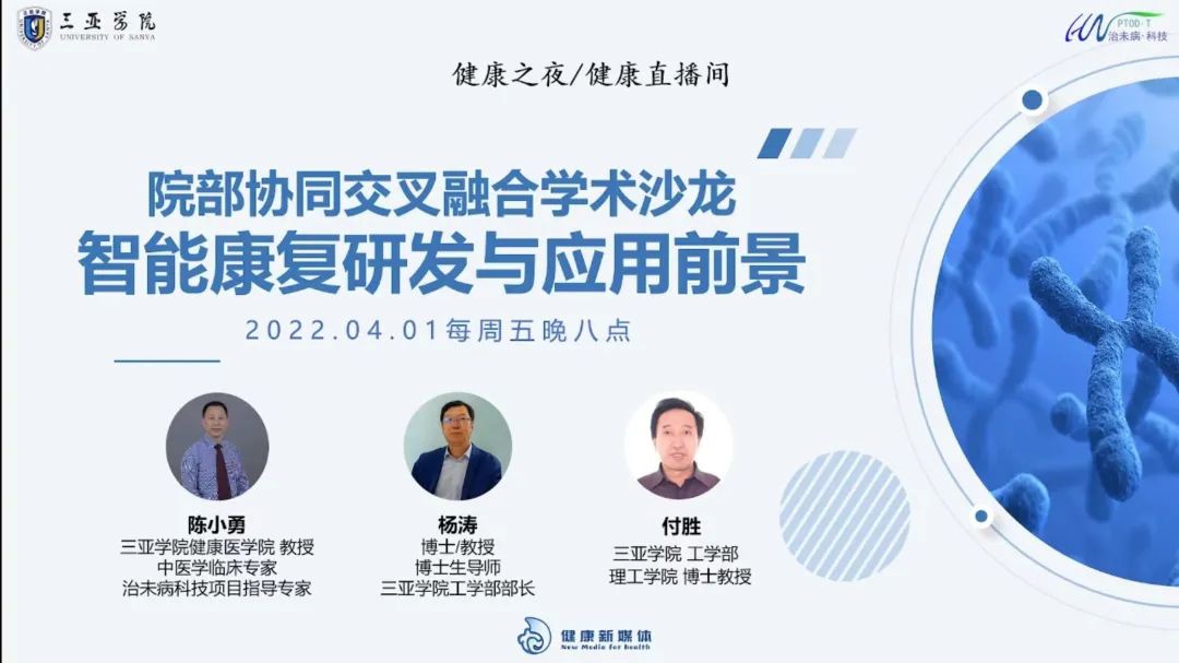(健康之夜直播间) 本期《健康之夜》从康养故事环节开始,以播放纪录片的形式讲述了邱燕桦陪伴意外成为半植物人的韦青龙一步步康复的感人爱情故事,也将今晚的健康之夜直接带入了主题。 今晚的康养大讲堂由新葡的京集团350vip8888/新葡的京集团350vip8888陈小勇教授以中国老龄化现状为切入点,讲述了目前康复事业发展的有关背景、智能康复研发现状与趋势、康复智能化前景和应用型人才培养。 (陈小勇教授PPT分享) 本期《健康之夜》康养大讲堂座谈对话环节由新葡的京集团350vip8888工学部部长杨涛教授为我们分享,在大数据信息社会的现在大数据对我们的帮助及其意义。杨涛教授提及,数据驱动的趋势越来越明显,通过长期的分析和挖掘大数据我们可以发现医学、保健、健康等各个方面的规律及更新的认识,这对我们研究人类长寿及康养具有很大的帮助及更广阔的发展。康复医学的发展离不开智能科技,因此相关专业除因掌握专业知识及技能还应具备信息素养、信息技术应用能力以及能将能力应用于专业上并推动信息发展。 随后,由新葡的京集团350vip8888工学部理工公司付胜教授给我们普及关于康复需求以及相关知识。付教授提及,目前世界需要康复的6亿人中有8千万人有肢体障碍,其中脑卒中导致的肢体障碍患者有两百万以上。由此可见,康复需求量非常大,就业前景非常广阔。新葡的京集团350vip8888新葡的京集团350vip8888/新葡的京集团350vip8888开设的康复治疗学专业旨在培养系统掌握康复治疗的基础理论与专业技能,能够应用中西医理论并拥有健康评估、康复评定等能力,除此之外,健康服务与管理、护理学及休闲体育(康体与抗衰老)专业也能够充分适应我国的健康产业及海南自由贸易区建设发展的需要。 (从左至右依次: 陈小勇教授、杨涛教授、付胜教授) 本期健康之夜由新葡的京集团350vip8888/新葡的京集团350vip8888与新葡的京集团350vip8888工学部跨学科联动首次联动的学术沙龙,在给大家科普专业知识的同时也增进了院部之间的交流,让师生们了解到智能康复的研发与应用前景,对自己的专业也有了更深刻的认识。新葡的京集团350vip8888开设的21个二级公司中共有51个本科专业,各个公司间联系紧密,注重培养多方面发展的人才,再加上四季如春的气候优势,确实是个大学求学的报考选择,期待新的学期能与新的面孔共同分享《健康之夜》。 文字 | 蒋淑婷 摄影 | 彭韵霏 编辑 | 王立葳