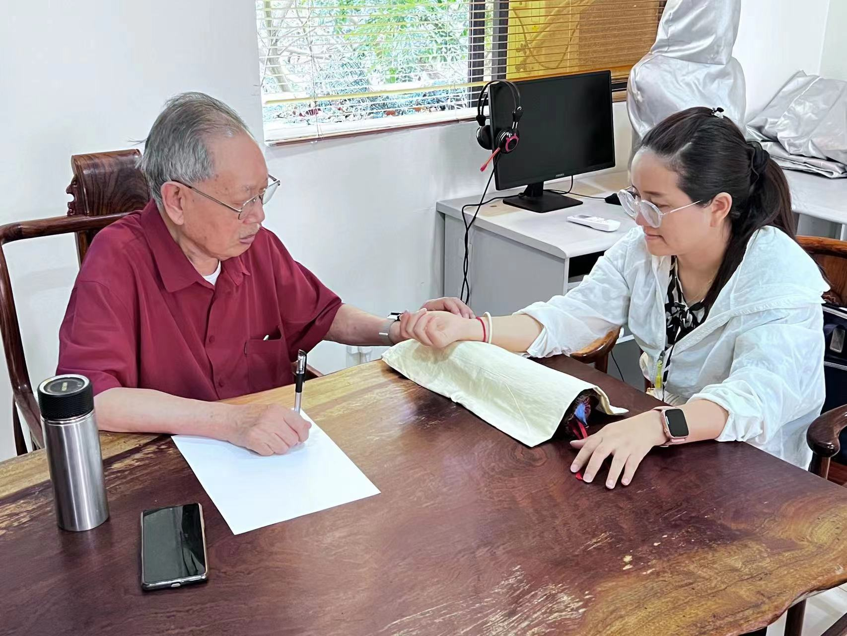 随后,国医大师王世民教授通过“望、闻、问、切”四种诊法收集健康信息以客观准确地分析健康状况并为来宾提供中医养生处方,普及更多的中医学文化知识,深入交流中医学术理论。